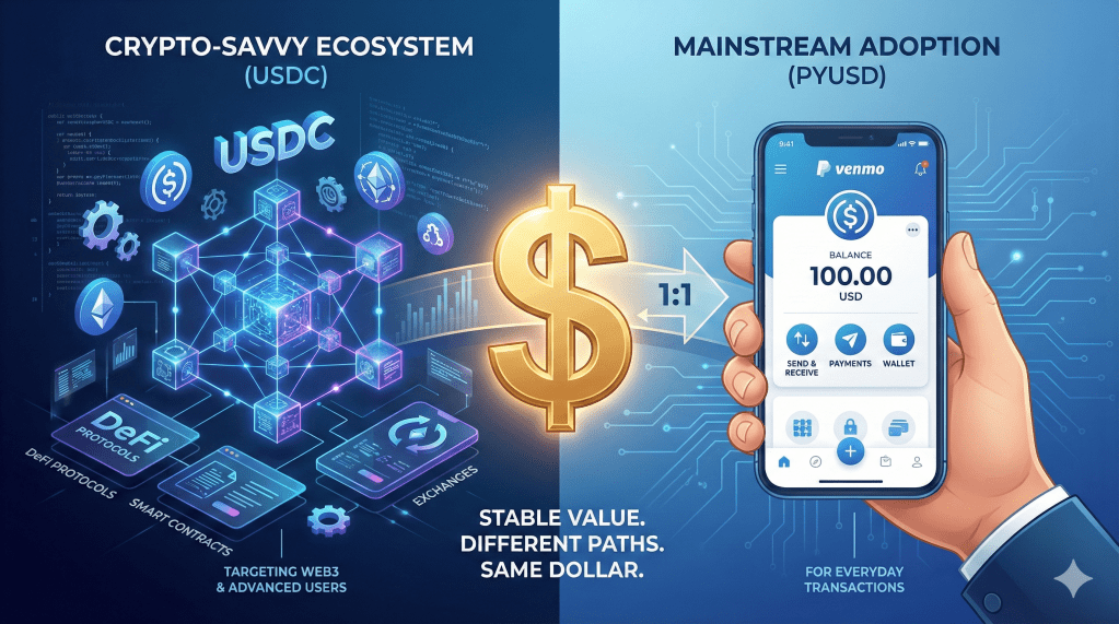 Two prominent stablecoins currently dominating different segments of the market are USD Coin (USDC) and PayPal USD (PYUSD). While both maintain dollar parity, they serve distinctly different user bases and purposes within the broader digital economy.